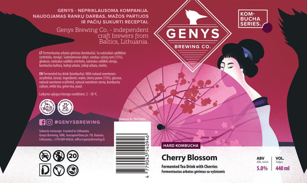 Fermentuotas alkoholinis arbatos gėrimas su vyšniomis, 5%